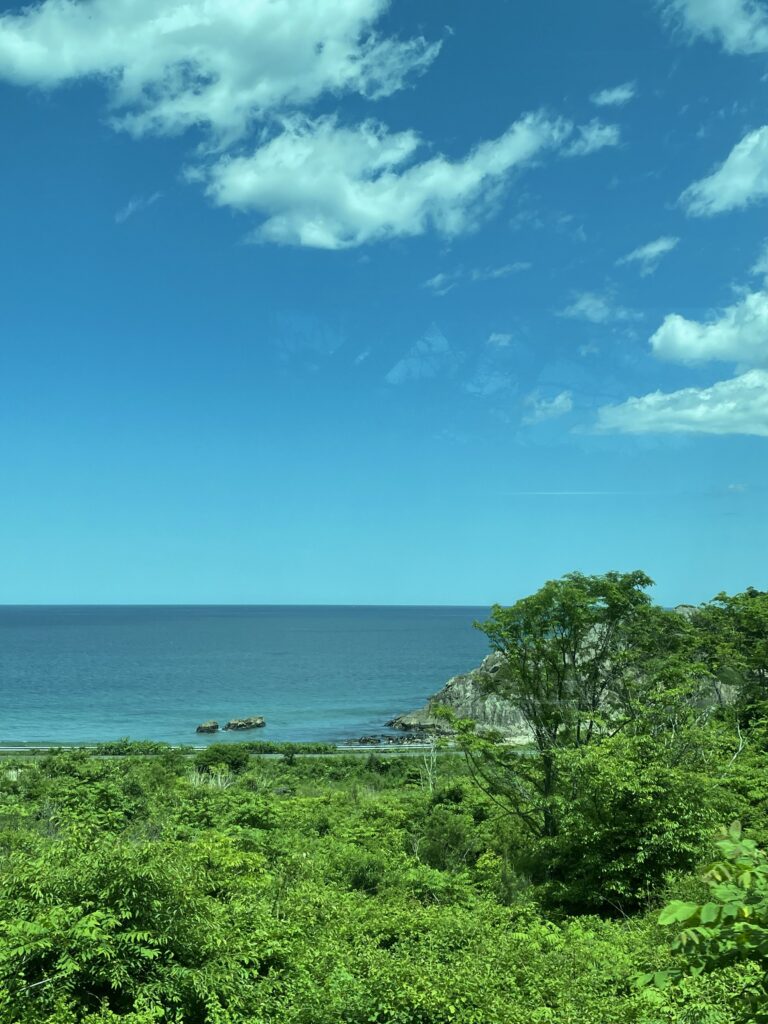 鮫駅あたりから、およそ1時間ほど、ずっと海岸線が続く。