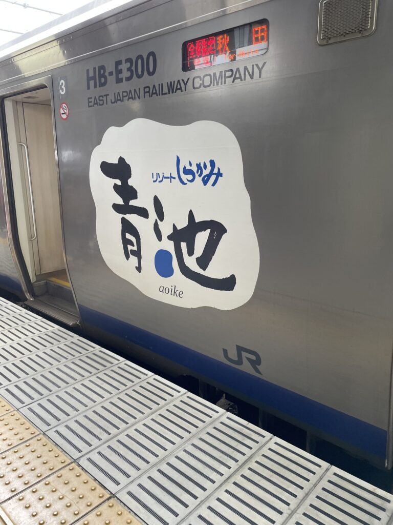 8:48発のリゾートしらかみに乗車。どの車両がくるのかワクワクしていたら青池がやってきた。