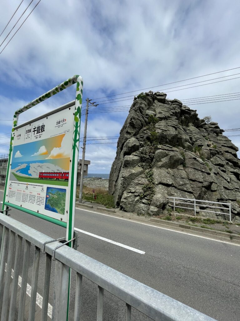 途中、千畳敷駅で途中下車できる。ここも見事な奇岩だらけ。ローカル線で降りることもできるだろうが、次の列車を待つよりは、リゾートしらかみで途中下車して眺めるのが効率的かと思う。