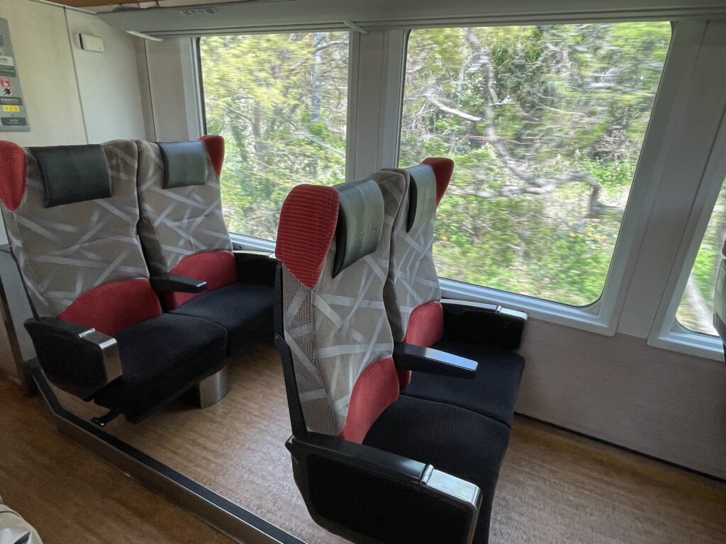 4号車に乗り込む。座った席ではないが、空いた時に座席を撮ってみた。